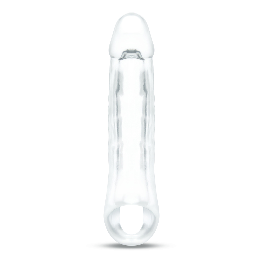 Add extra length and girth with the 2 Inch See-Thru Penis Extender from Size Up. The realistic shape, details and textured surface create the ultimate experience in pleasure and play, giving you and your partner the experience of your life. The transparent design provides visual stimulation and the ball loop ensures firm control over your enhanced package. Use the three included rings to increase your stamina and enhance your pleasure.