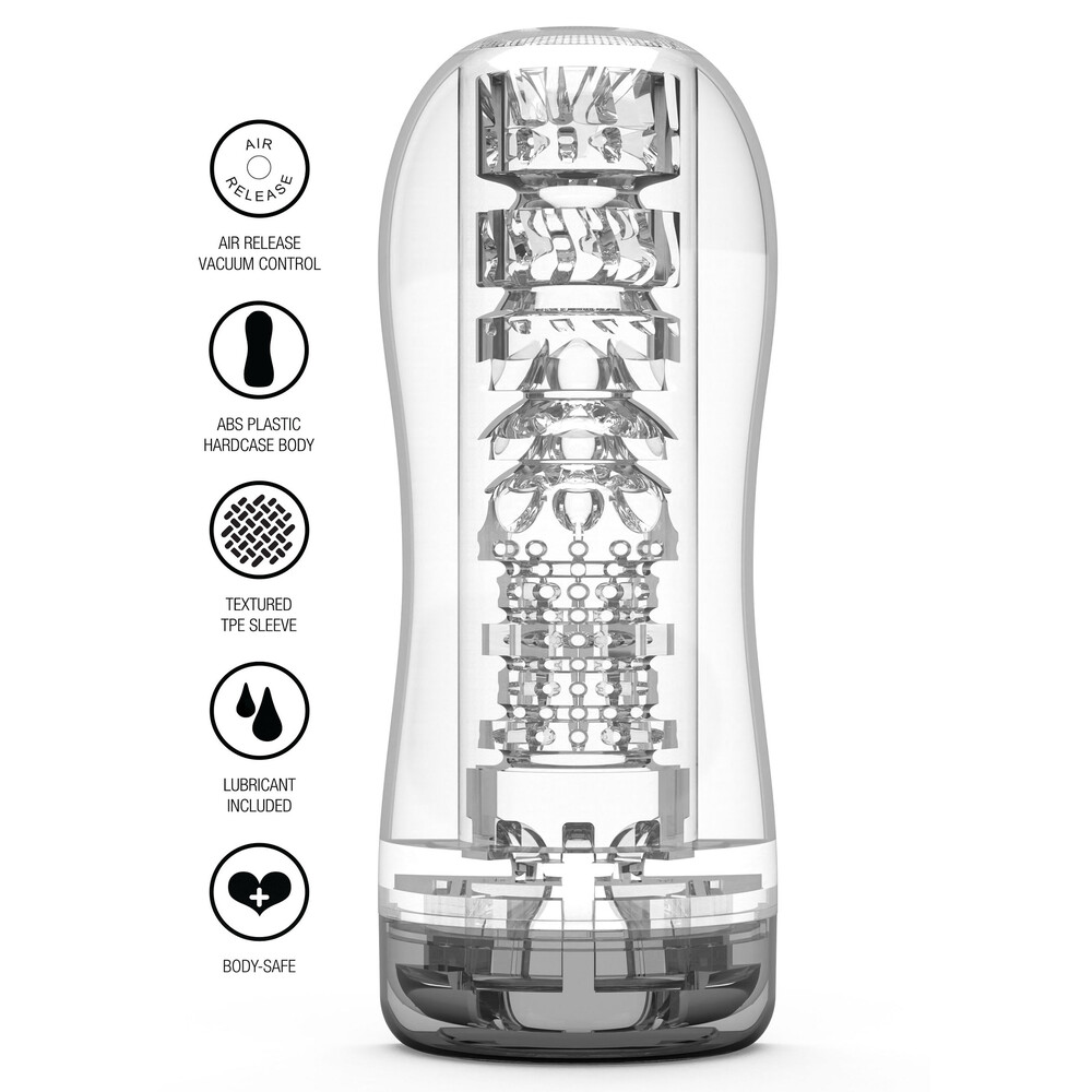The HERO’s textured sleeve creates a tantalizing sucking sensation which can be controlled by the airhole on the top of the tube, while the transparency allows you to monitor every stroke which will elevate your masturbation experience to new heights of pleasure.
